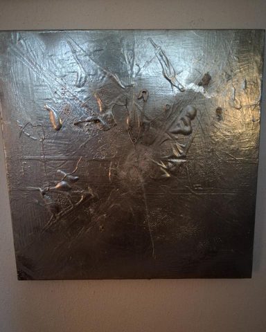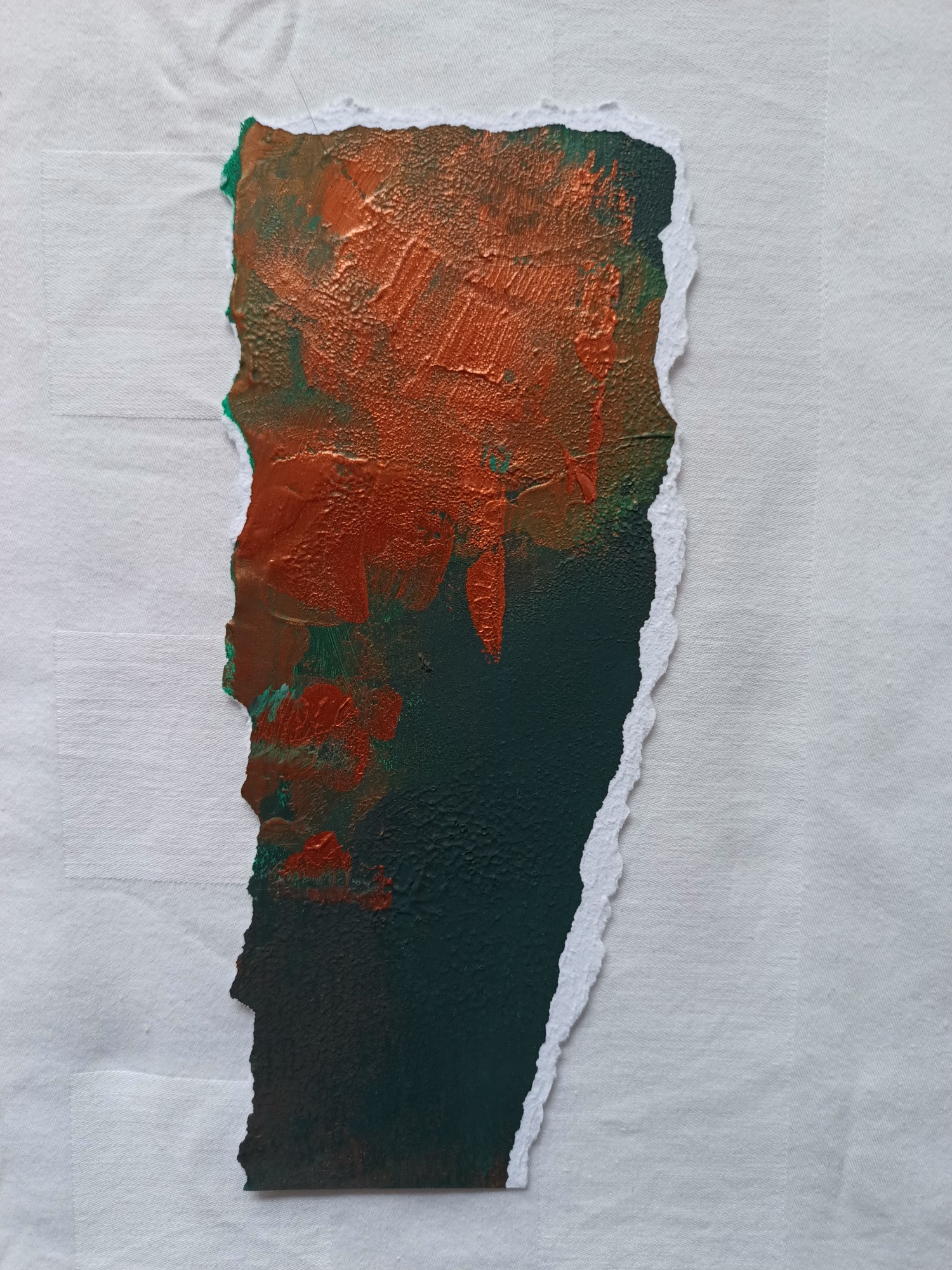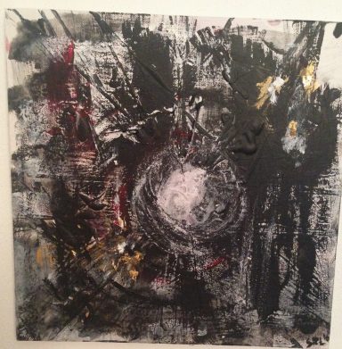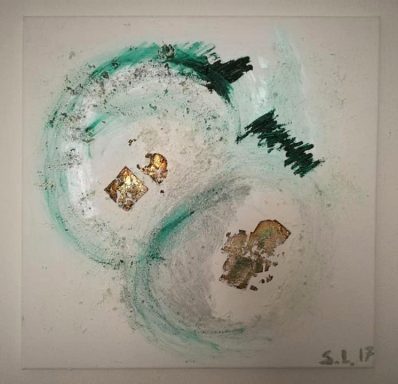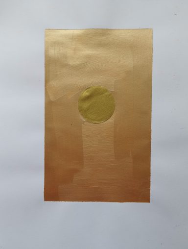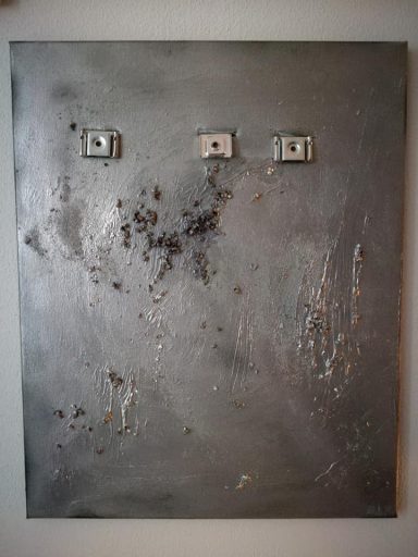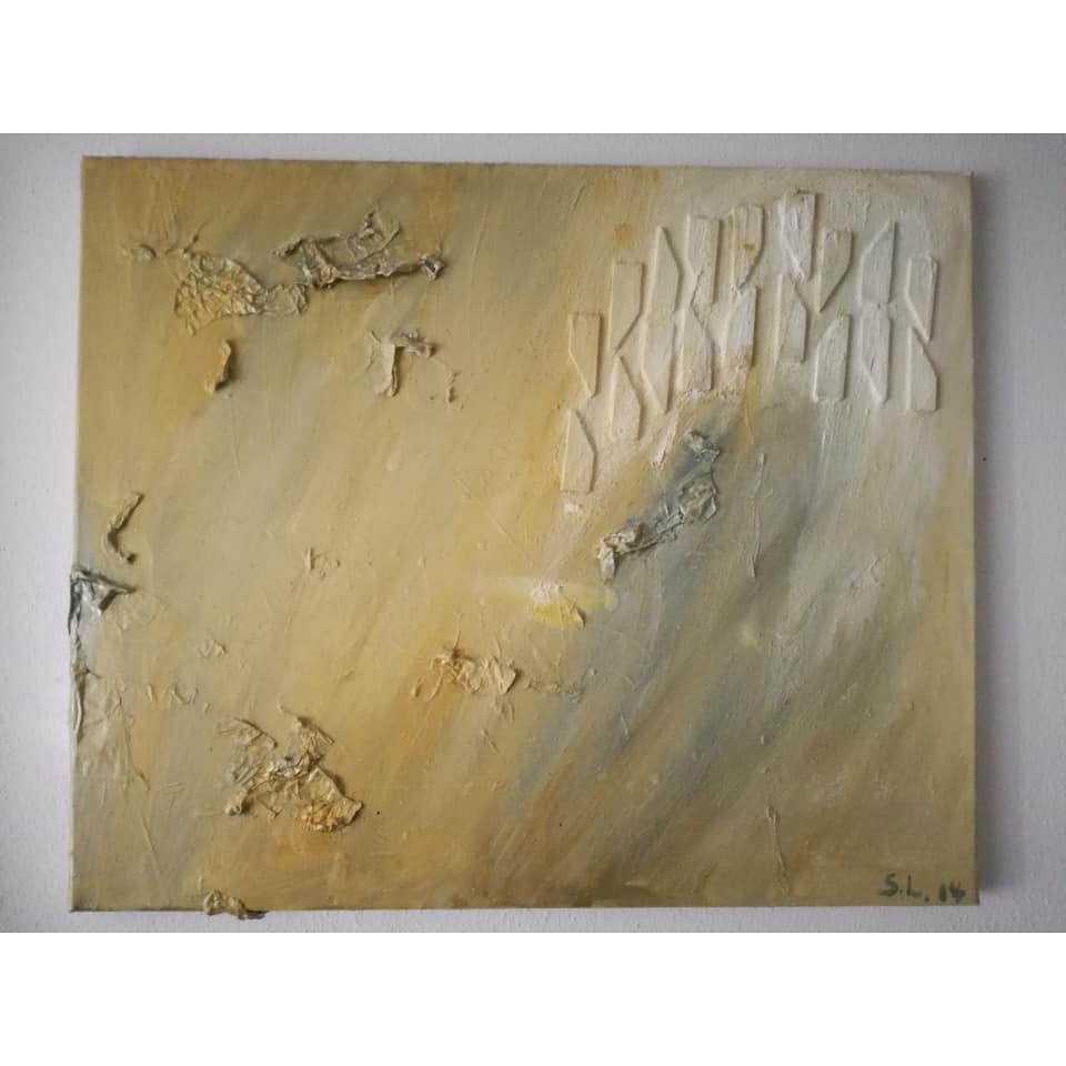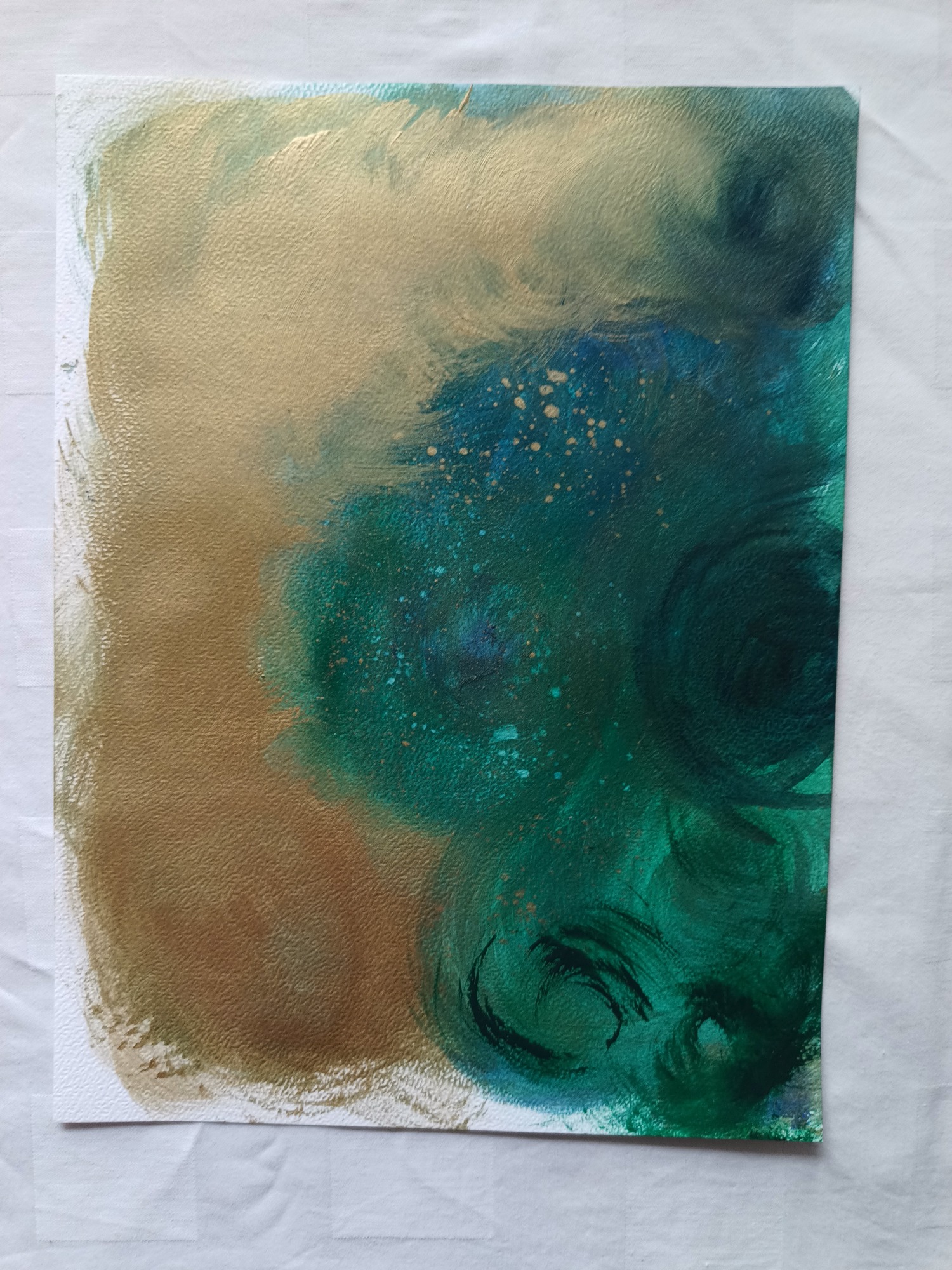 Ich habe mit zerrissenen Blättern, mit Spachteln, mit Strukturpaste und mit etwas Blattgold gearbeitet.